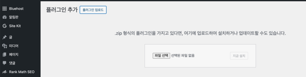 아래 그림의 아이콘이 보일거예요. 설치-> 활성화 하시면 플러그인 설치 완료. 만약 이렇게 찾는게 쉽지 않다. 그러면 다운로드해서 업로드 하는 방법이 있어요.